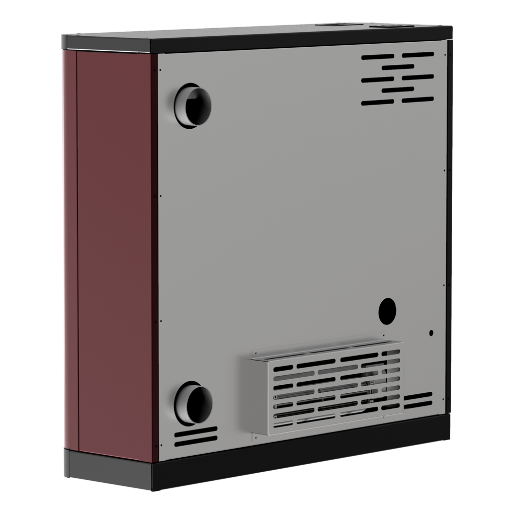 ПЕЛЕТНА КАМИНА БЕЗ ВОДНА РИЗА И ВЪЗМОЖНОСТ ЗА МОНТАЖ НА ВЪЗДУХОВОД - MARELI SYSTEMS AURORA SLIM 11 kW - ИЗГЛЕД ОТЗАД И ОТДЯСНО