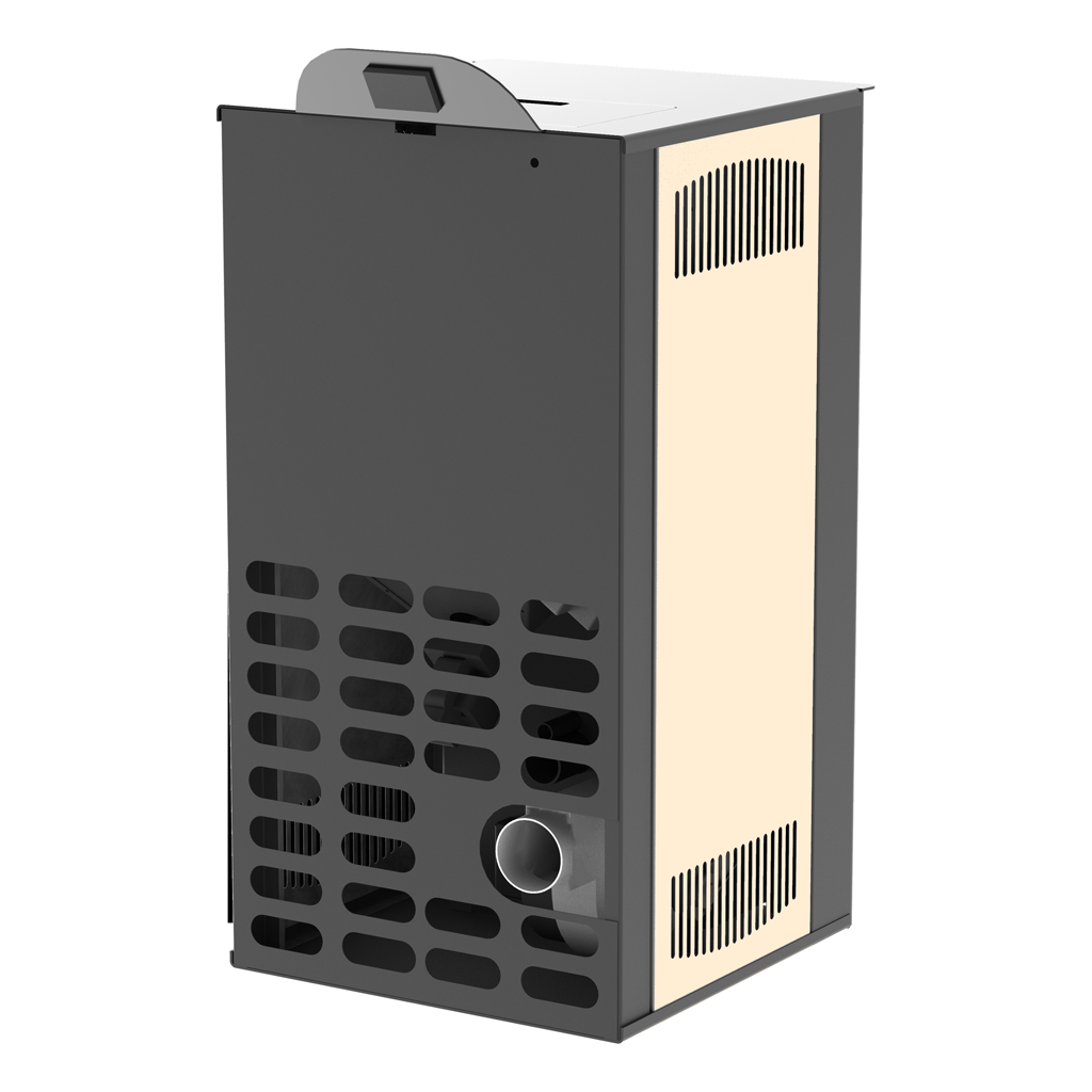 ПЕЛЕТНА КАМИНА БЕЗ ВОДНА РИЗА - MARELI SYSTEMS PS AIR New Design 8 kW, 10 kW, 12 kW, - ИЗГЛЕД ОТЗАД и ОТДЯСНО