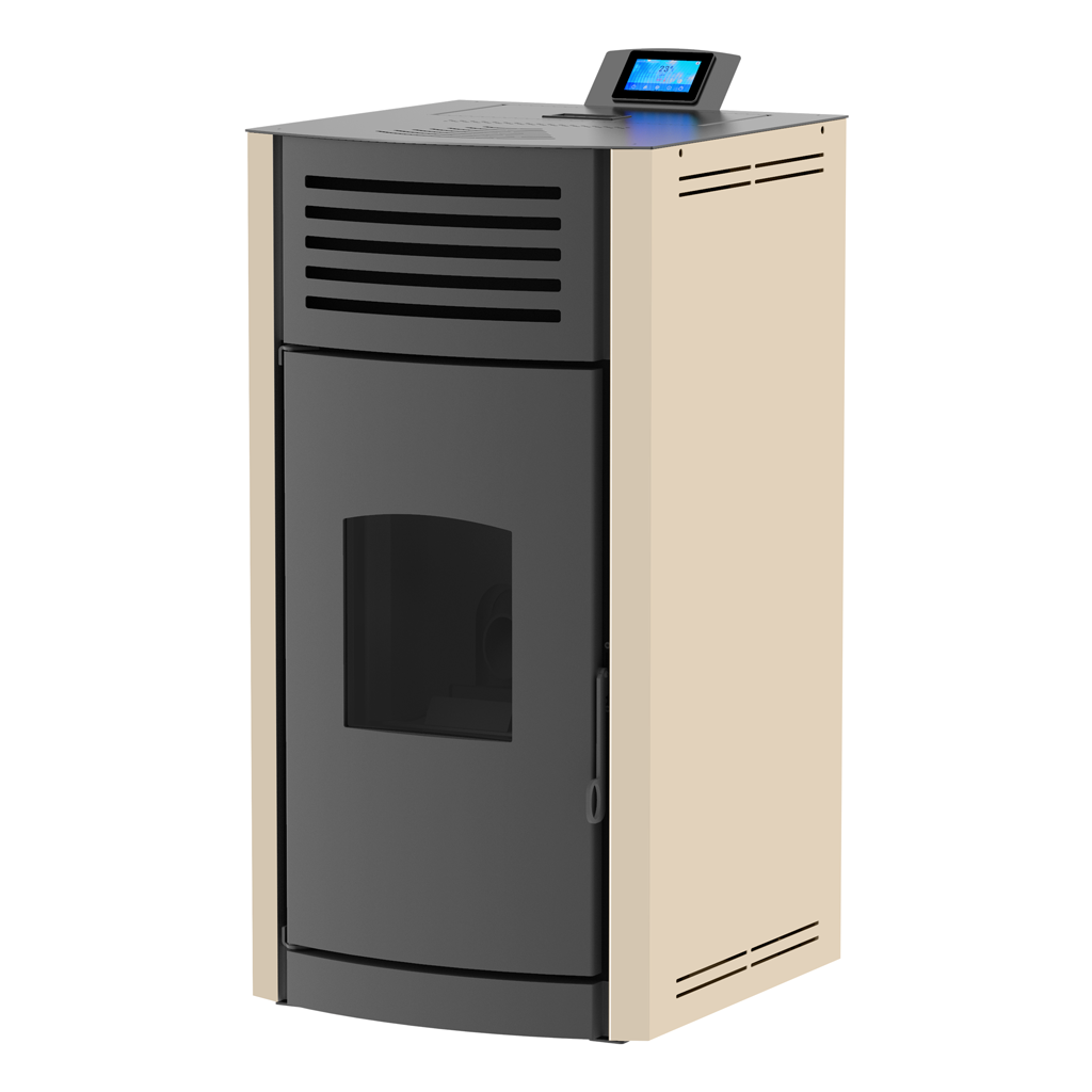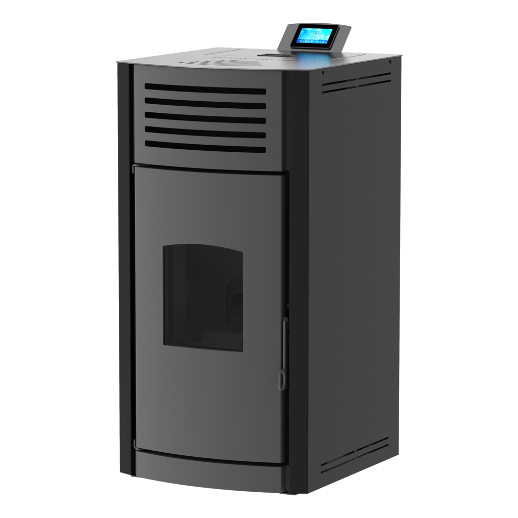 ПЕЛЕТНА КАМИНА С ВОДНА РИЗА И АВТОМАТИЧНО ПОЧИСТВАНЕ НА ГОРИВНАТА ПОТА - MARELI SYSTEMS ONYX HYDRO 12 kW - ИЗГЛЕД ОТПРЕД