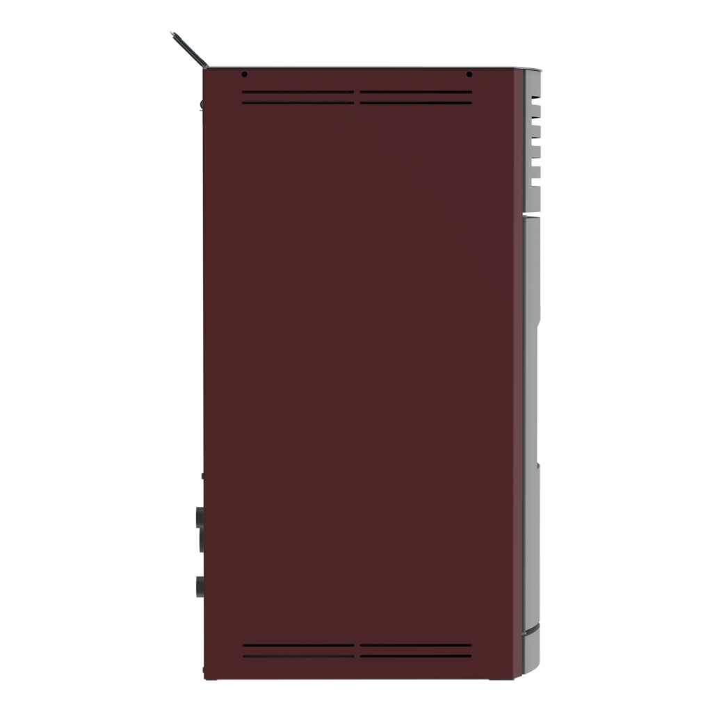 ПЕЛЕТНА КАМИНА С ВОДНА РИЗА И АВТОМАТИЧНО ПОЧИСТВАНЕ НА ГОРИВНАТА ПОТА - MARELI SYSTEMS ONYX HYDRO 12 kW, 15 kW, 18 kW, 24 kW и 30 kW - ИЗГЛЕД ОТЗАД И ОТЛЯВО