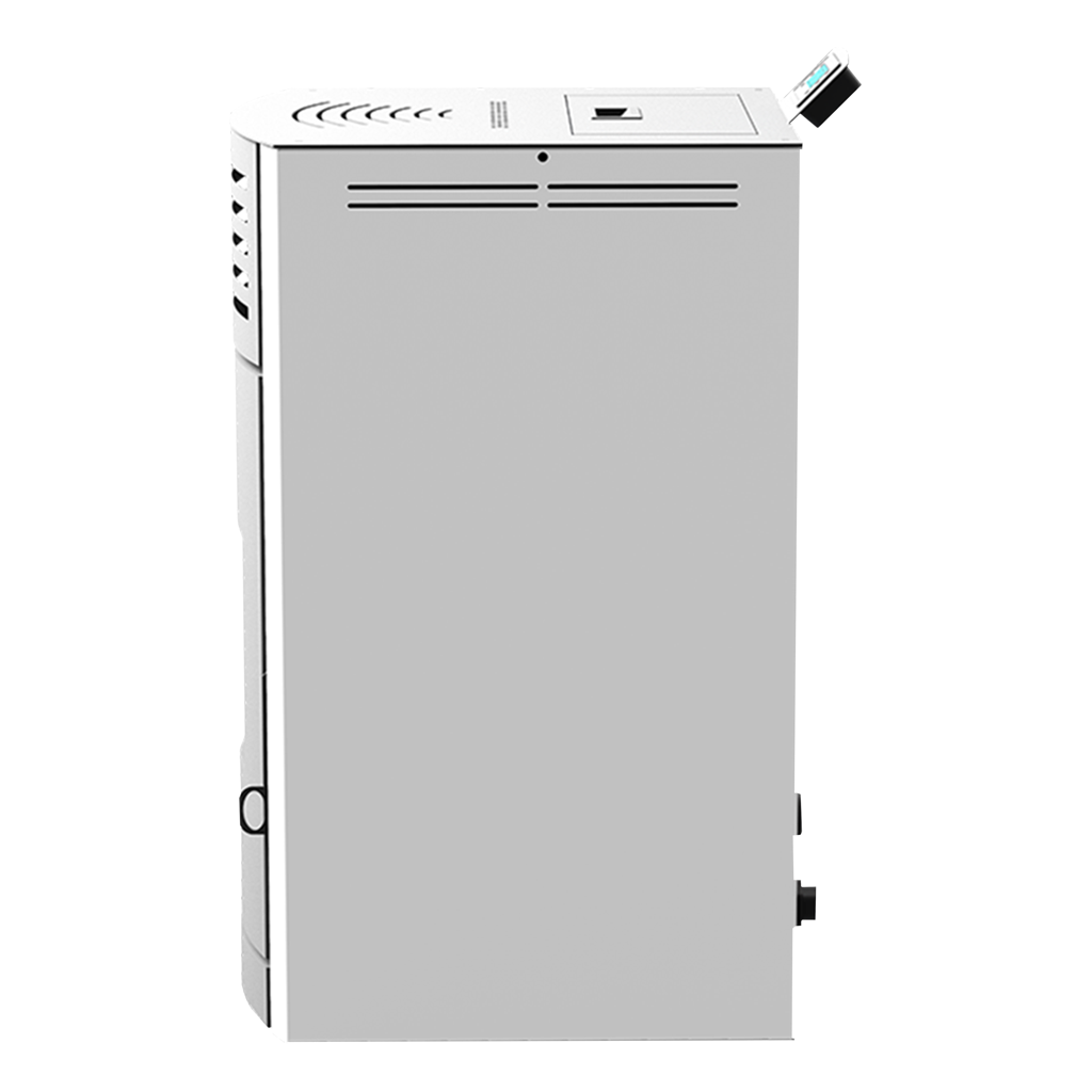 ПЕЛЕТНА КАМИНА С ВОДНА РИЗА И АВТОМАТИЧНО ПОЧИСТВАНЕ НА ГОРИВНАТА ПОТА - MARELI SYSTEMS ONYX HYDRO 12 kW, 15 kW, 18 kW, 24 kW и 30 kW - ИЗГЛЕД ОТГОРЕ